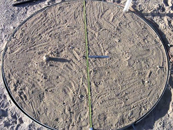 When the soil was installed, four conservative tracers were applied uniformly at four depths from 0.49-1.8 ft (0.15-0.55 m). Each lysimeter is instrumented with 153 sensors installed at 15 different depths from 0 to 9.5 ft (250 cm). The sensors include 17 different instruments for measuring soil, water, gas, and temperature profiles. These data loggers can be accessed remotely so investigators can monitor individual sensors and weather systems as needed.